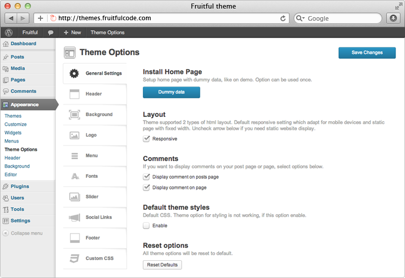 Fruitful היא תבנית חינמית רספונסיבית יפיפייה לוורדפרס, ישנן המון אפשרויות בממשק הניהול של התבנית, העלאת לוגו פשוטה, סליידר jQuery, אייקונים חברתיים, תפריטים, רקעים, ספריית גוגל פונטס, Shortcodes מובנים, CSS מותאם אישית ועוד.